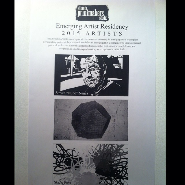 “Emerging Artist Residency (EAR) was established in 2009 by Atlanta Printmakers Studio (APS) to provide emerging artists the resources to create a body of work and an opportunity for professional development. APS’s mission is to nurture the practice of printmaking by providing the means for artists to make prints while celebrating and educating the community about the fine art of printmaking. EAR accomplishes this goal by providing artists a well-equipped studio, education, mentorship, exhibition, as well as, a unique opportunity to work with practicing artists of varied backgrounds and diverse skills.
